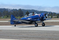 • N2832V @ KWVI - North American AT-6G in dark blue colors with USMC titles and Anytime II nose art taxiing @ 2010 Watsonville Fly-In - by Steve Nation by Steve Nation @ KWVI
